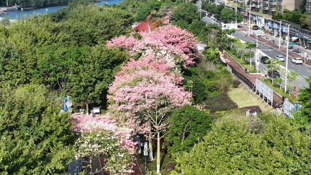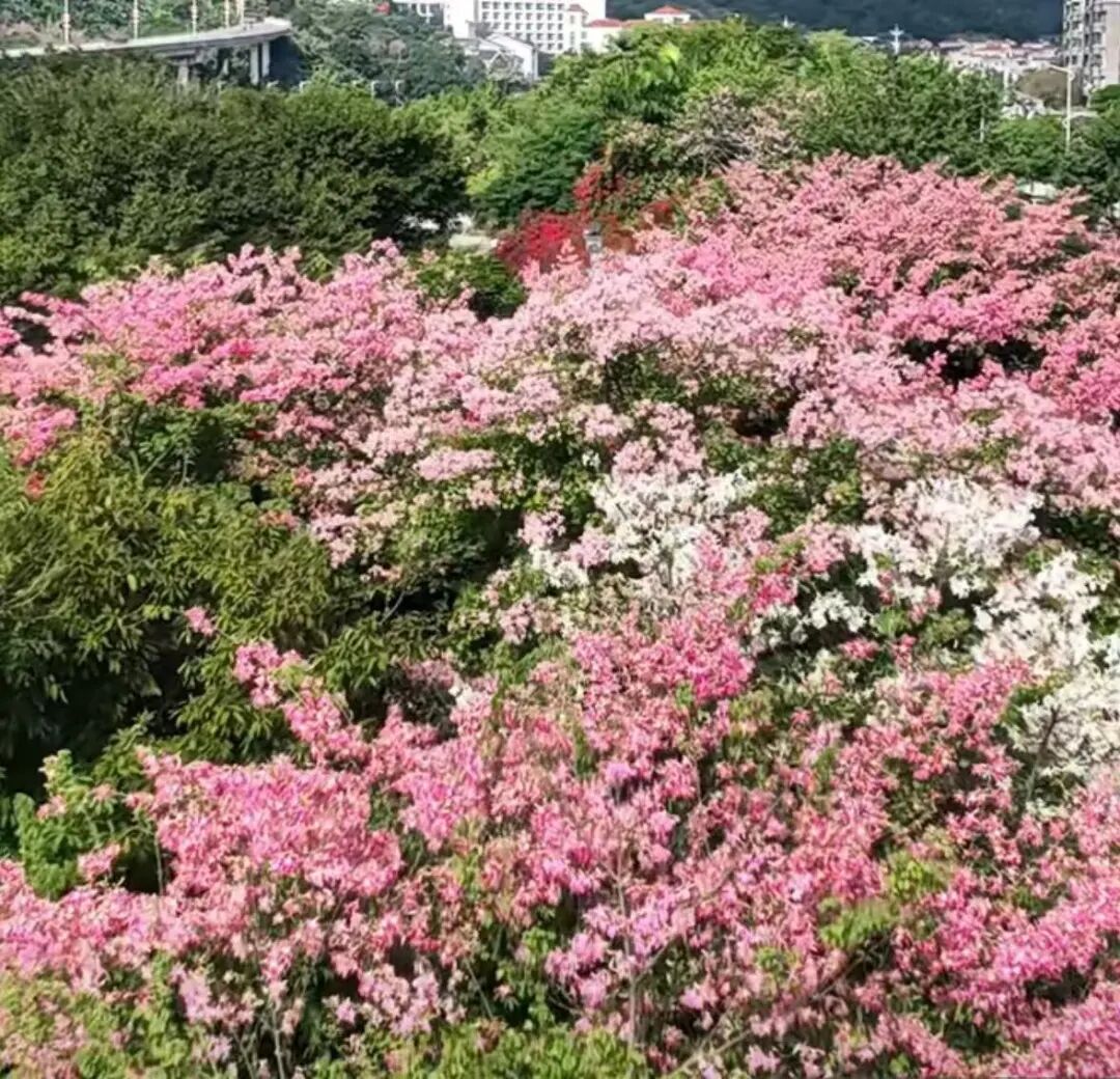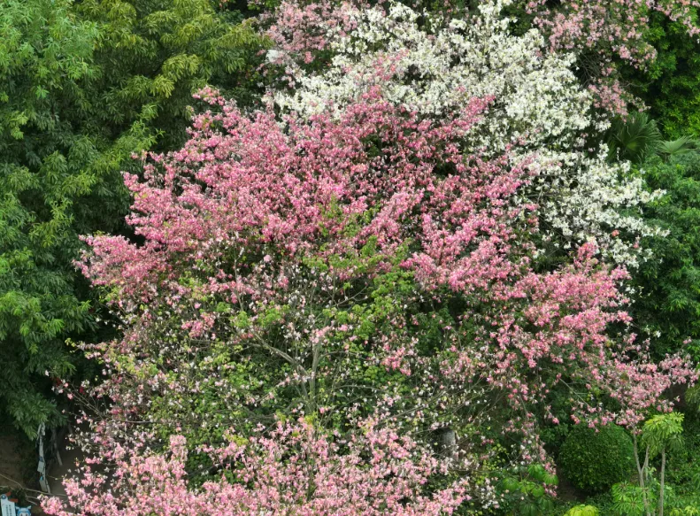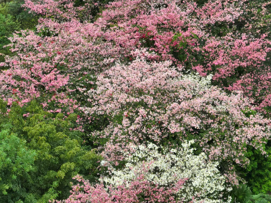 高空俯瞰,滿樹粉黛