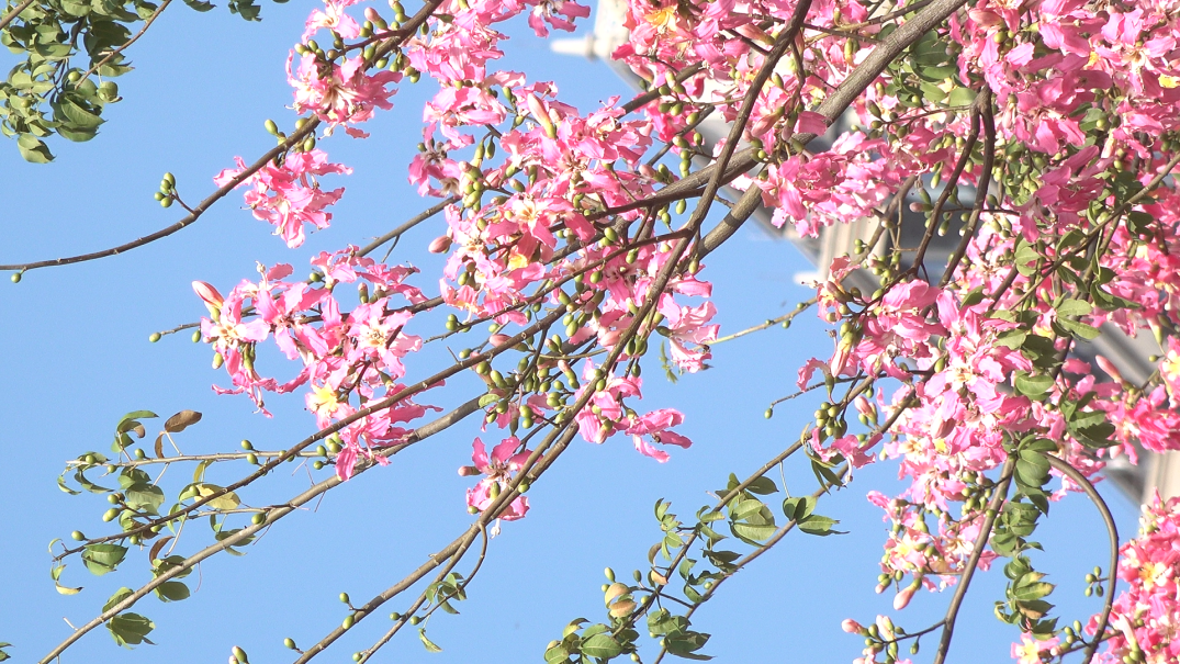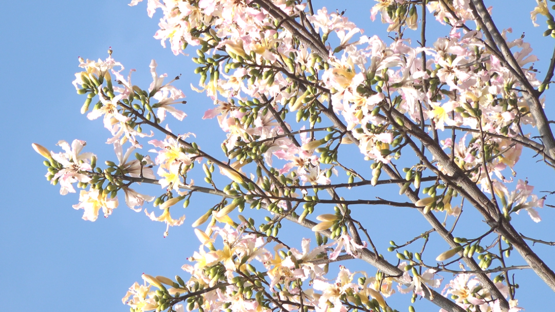 異木棉花瓣從樹上懶洋洋地飄落