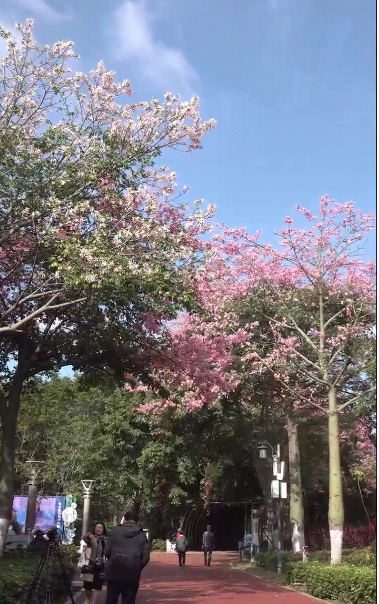 人與美麗異木棉交相輝映