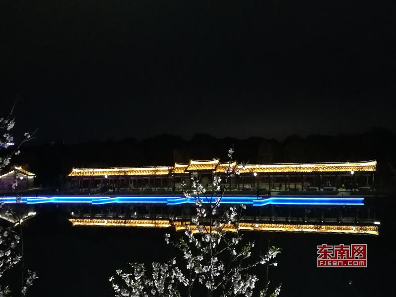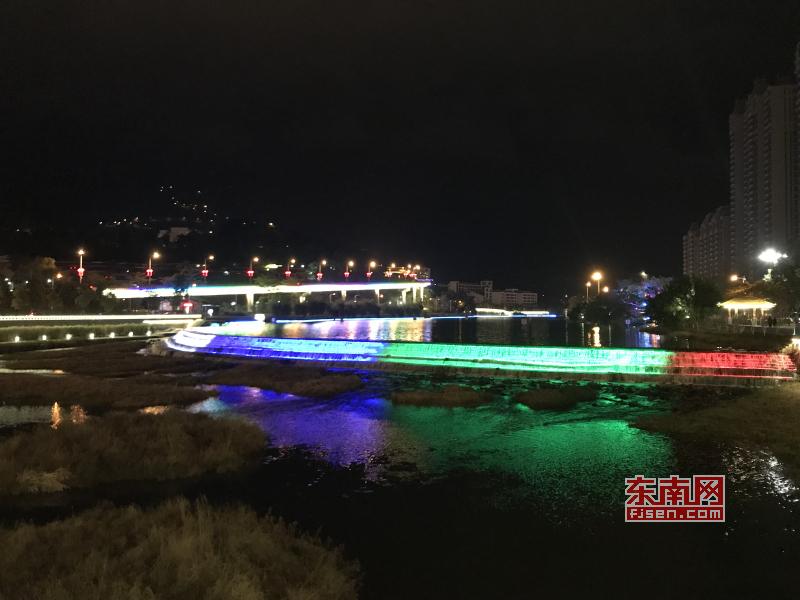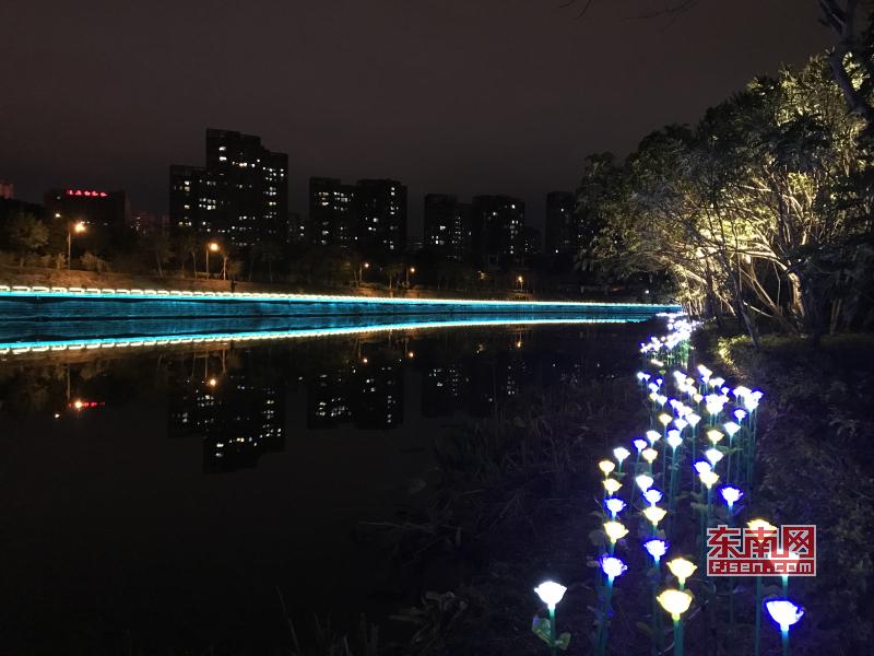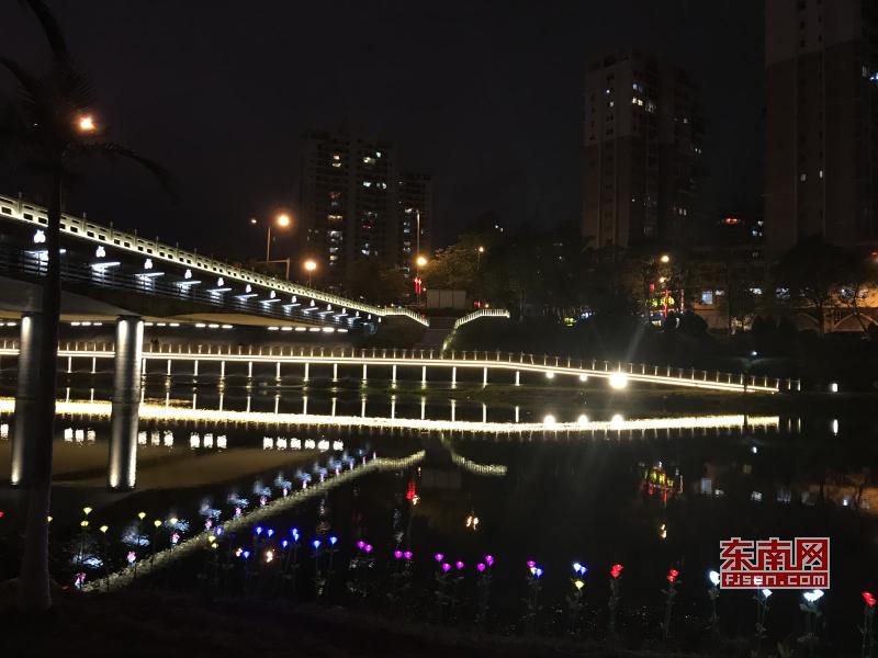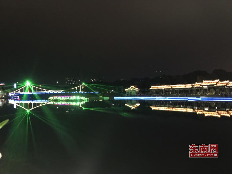 璀璨絢麗燈光扮靚莆田夜景 東南網(wǎng)莆田2月22日訊(本網(wǎng)記者 王龍風(fēng))火樹銀花,燈水交融,流光溢彩,夜色輝煌。春節(jié)期間正式亮燈的莆田泗華溪、綬溪公園華麗夜景,成為許多市民夜間游玩不可錯(cuò)過的絕佳去處,每天都有許多市民沿著泗華古橋—星光隧道—新延壽橋底—過溪橋—延壽古橋,這一“夜游畫廊”,一睹兩溪公園璀璨夜景的風(fēng)采。 正月初六(2月21日),是春節(jié)長(zhǎng)假的最后一個(gè)夜晚,東南網(wǎng)記者來到泗華溪、綬溪公園看到,處處色彩斑斕,一片燈火輝煌景象。走進(jìn)公園內(nèi),一路上游人如織,來來往往好不熱鬧。色彩變換炫動(dòng)的星光隧道,更是吸引了許多市民前來穿梭體驗(yàn),許多小孩興奮地追逐著地面上游動(dòng)的“魚兒”。