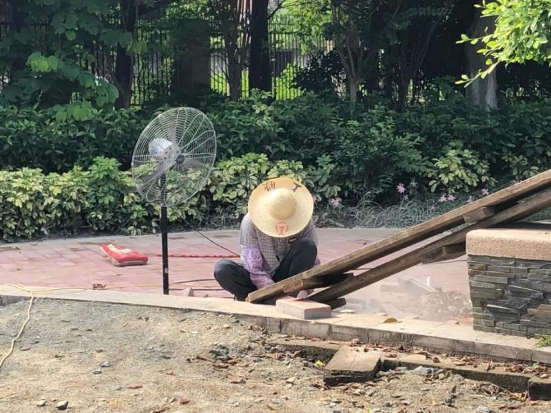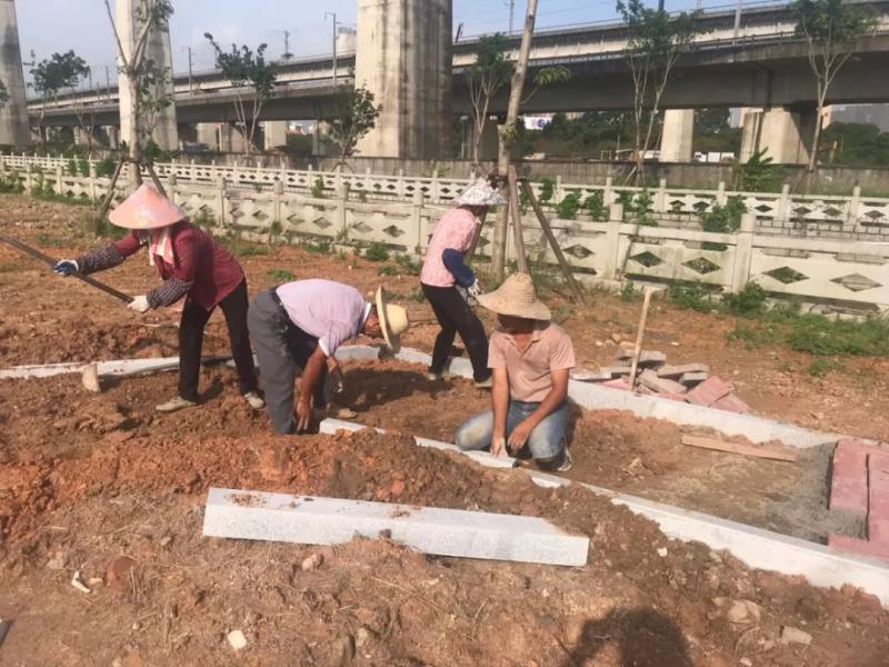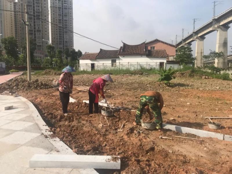 為確保小游園建設(shè),園林人不畏酷暑堅持在一線工作