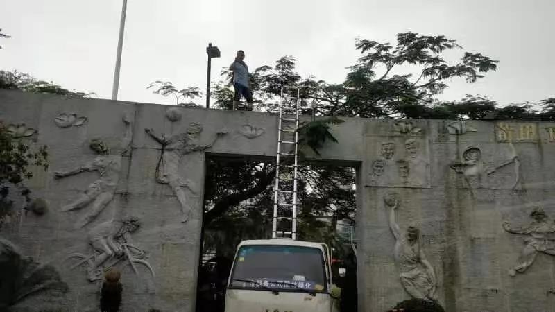 體育中心南廣場(游泳館)前浮雕高空作業(yè)