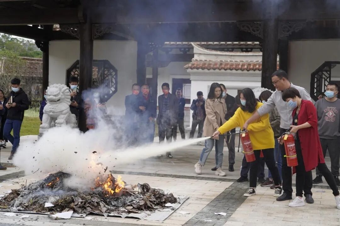 課后,羅魁琛副主任帶領(lǐng)全體參訓(xùn)人員一同前往空置場地,現(xiàn)場詳細(xì)介紹了滅火器的用途、性能、原理和操作方法,并當(dāng)場示范教學(xué)如何正確使用滅火器。參訓(xùn)人員都認(rèn)真學(xué)習(xí)了正確使用滅火器的方法,并親自體驗滅火器的使用操作方法,邊學(xué)邊練,提高了使用滅火器的技能。