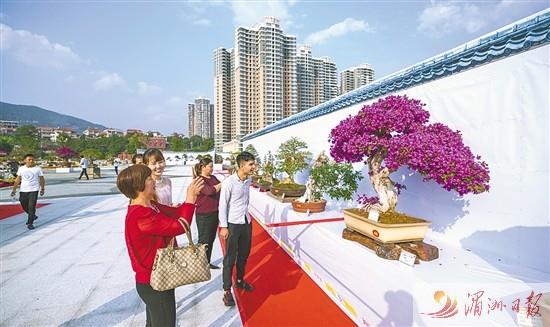 圖為各式盆景吸引市民駐足觀賞。 湄洲日報記者 陳斌 楊怡玲 攝  莆田網訊 11月8日,第8屆莆田市盆景展暨福建省精品邀請展在南湖公園蓮花廣場開展,展覽將…