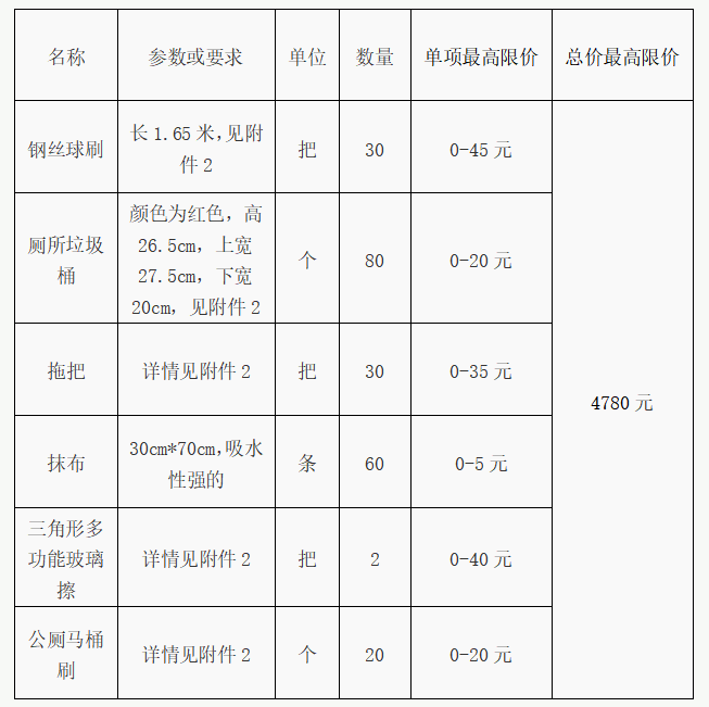 一、報價要求 (一)報價時需在產(chǎn)品規(guī)格選項一欄點(diǎn)擊“填寫單價”填報各項產(chǎn)品單價,并匯總后填報下方的總價。 (二)自行下載附件,按我公司發(fā)出的產(chǎn)品規(guī)格要求及單位數(shù)量填報完整資料,并加蓋公司印章后以圖片形式上傳至響應(yīng)文件。 (三)本批采購設(shè)單項最高限價和總價最高限價,報價時,不可超出本批采購的單項及總價最高限價范圍。 備注:以上報價均包含稅費(fèi)、運(yùn)費(fèi)等費(fèi)用。 二、評標(biāo)方式:本項目采用總價最低價中標(biāo)法。(若中標(biāo)價相同,將采取隨機(jī)抽取方式選擇1家中標(biāo)單位)。 三、送貨方式 (一)供貨地點(diǎn): 綬溪公園南大門倉庫 (二)供貨次數(shù):分 1 次供貨 (三)提供樣品: / 四、安裝方式: / 注:未滿足上述“報價要求”中任意一點(diǎn),將直接視為無效報價。 聯(lián)系人:小陳,05942259119 附件:1、公開詢價報價表/upload/202303/08/202303081151365800.xlsx 2、樣式圖片/upload/202303/08/202303081151457666.doc