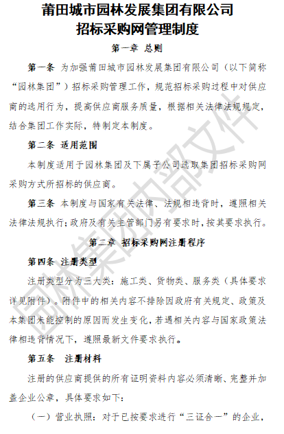 莆田城市園林發(fā)展集團(tuán)有限公司關(guān)于印發(fā)招標(biāo)采購網(wǎng)管理制度的通知